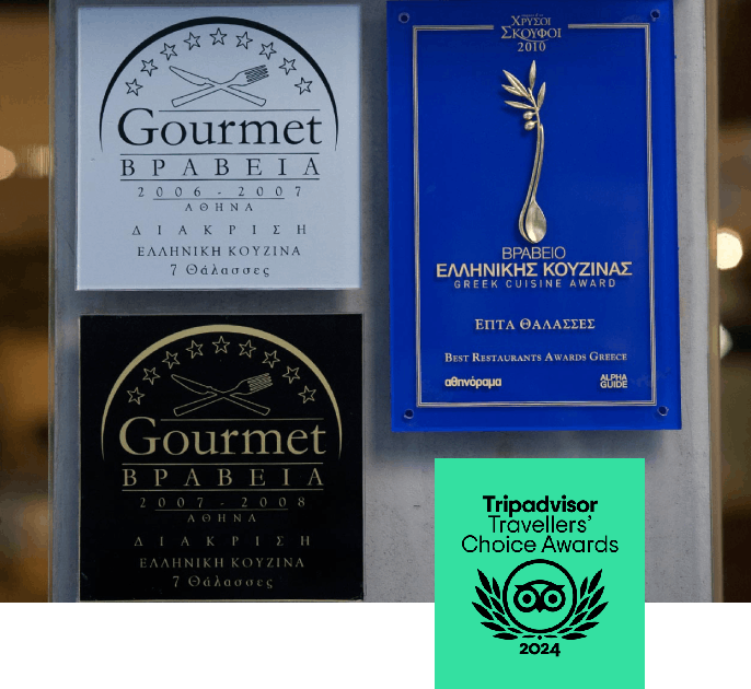 A few years before that, during 2006–2007 and 2007–2008, our kitchen was distinguished for two consecutive years by the Gourmet Awards for our contribution to Greek gastronomy in Athens. These distinctions have been important milestones for us, encouraging us to continue with the same passion and commitment to the flavors of our homeland.